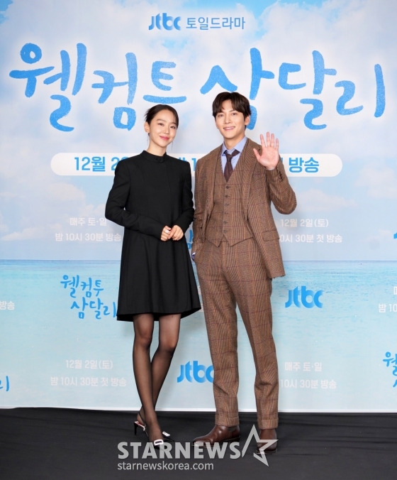 배우 신혜선, 지창욱이 1일 오후 온라인으로 진행된 JTBC 토일드라마 '웰컴투 삼달리' 제작발표회에 참석해 포즈를 취하고 있다.