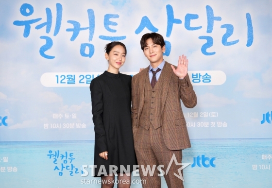 배우 신혜선, 지창욱이 1일 오후 온라인으로 진행된 JTBC 토일드라마 '웰컴투 삼달리' 제작발표회에 참석해 포즈를 취하고 있다.