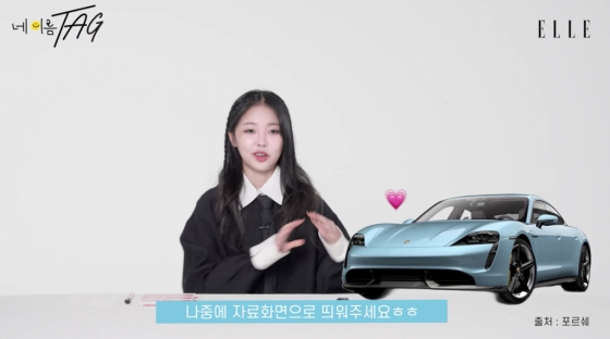 또한 미노이는 가방 안에 든 자동차키를 꺼냈다. 미노이는 "이 시대를 살아가는 21세기 신여성으로서 참을 수 없는 제 드림카"라며 "차를 가져올 수 없어서 키를 가져왔다"라고 말했다. 미노이는 "최근 큰일을 했다. 포르쉐 타이칸을 샀다. 색깔은 하늘색이다. 제 자동차를 붕붕이라고 한다"라고 말했다.