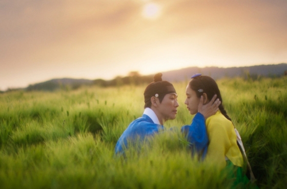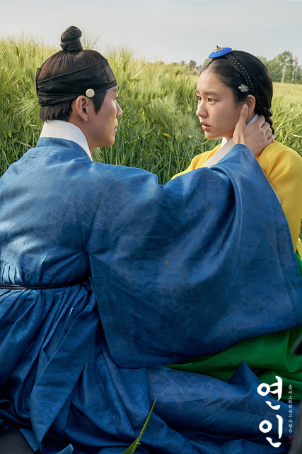 ▶매우 만족감이 큰 신입니다. 미장센이 너무도 아름다운 장면이었죠. 그 장면은 지금 생각해도 아름답습니다. 저는 작품을 시작하기 전에 전체적인 컬러 팔레트를 만들고 시작하는데요. 노랑과 청록은 팔레트에서도 중요하게 생각했던 컬러라 어느 시점에 사용할지 아껴둔 컬러였어요. 마침 청보리 밭이 장소로 선택돼 사진으로 받았는데, 설익은 풋사과 같은 길채의 모습, 그 소녀의 첫 키스의 설렘과 너무나도 잘 어울린다 생각됐죠. 해서 아껴둔 컬러를 이 신에서 사용했습니다. 예상대로 정말 풋풋하고 예쁘더군요. 청보리밭에 청 연두 치마라 묻히는 걸 걱정하는 분도 계셨는데, 치마 원단을 염색할 때 형광 안료를 살짝 섞어서 햇볕을 받으면 색이 발광할 수 있도록 디테일한 처리를 해뒀습니다. 해서 두 사람의 색과 자연의 색이 어우러져 동화같이 아름다운 신이 완성될 수 있었습니다.