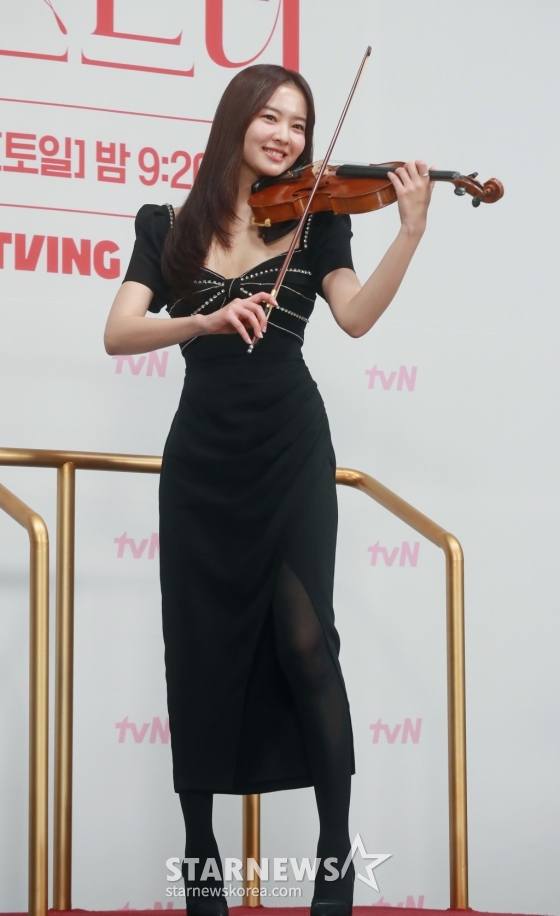 배우 황보름별이 6일 오전 서울 구로구 라마다 신도림 호텔에서 진행된 tvN 토일드라마 '마에스트라' 제작발표회에 참석해 포즈를 취하고 있다.