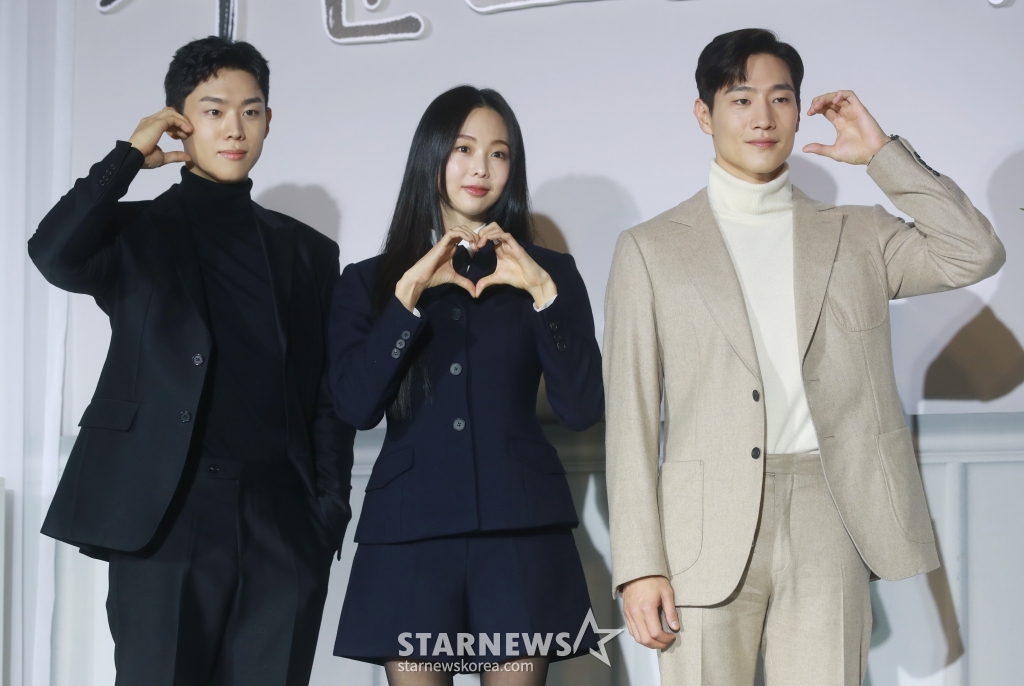 배우 손정혁, 금새록, 노상현이 6일 오후 앰베서더 서울 풀만 호텔에서 진행된 디즈니+ '사운드트랙 #2' 제작발표회에 참석해 포즈를 취하고 있다.