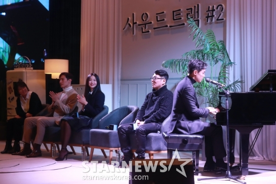 가수 겸 배우 손정혁이 6일 오후 앰베서더 서울 풀만 호텔에서 진행된 디즈니+ '사운드트랙 #2' 제작발표회에 참석해 OST를 선보이고 있다.