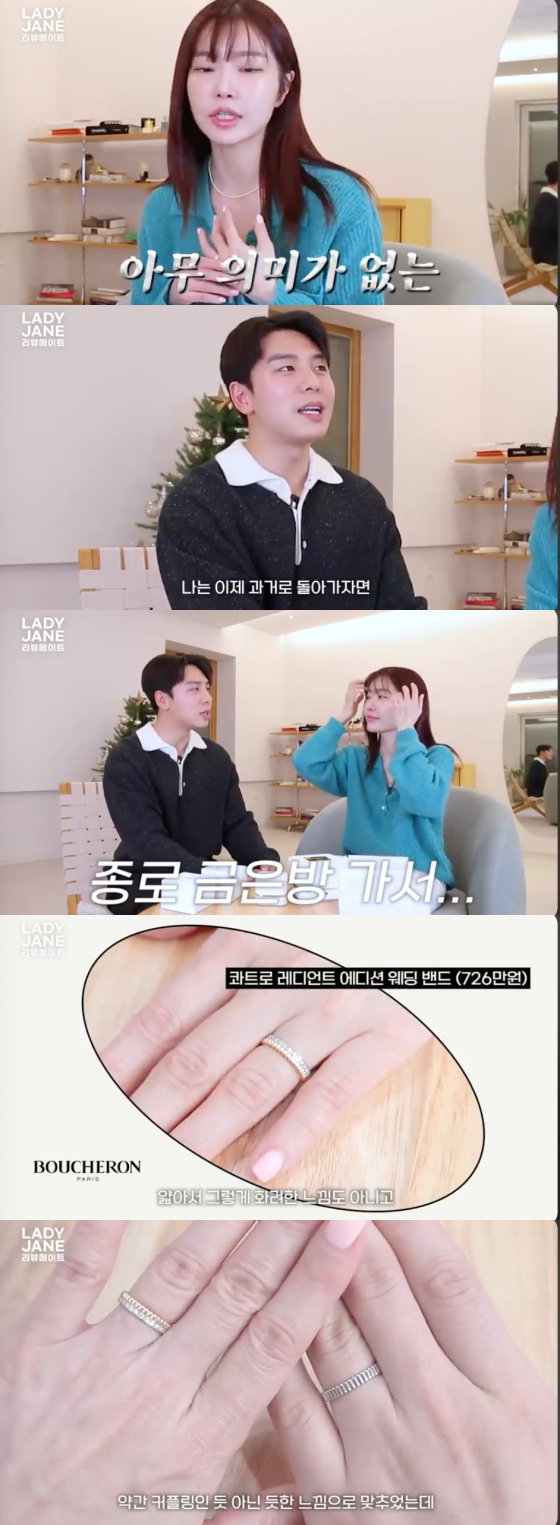 5일 유튜브 채널 '레이디제인의 리뷰메이트'에는 '패션 vs 품격? 명품 매장 10군데 다녀온 후기'라는 제목의 영상이 게재됐다. 영상에서 레이디제인은 임현태와 함께 결혼 반지를 고른 후기를 밝혔다.