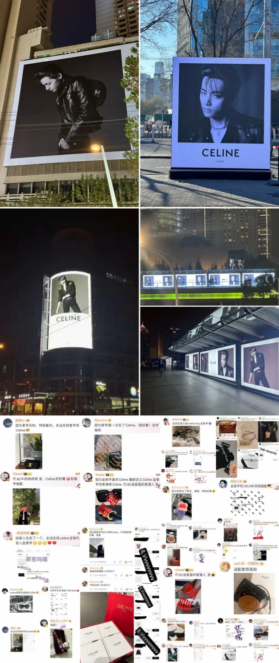 뷔의 새로운 화보가 공개되자 '셀린느' 공식 계정에는 수 많은 팬들의 구매 인증 댓글이 올라와 놀라움을 안겼다. 중국 팬들은 좋아하는 연예인이 브랜드를 홍보하면 상품 구매 인증으로 사랑을 표현하는 것으로 알려져 있는데, K팝 아이돌에게는 처음 있는 일이다.