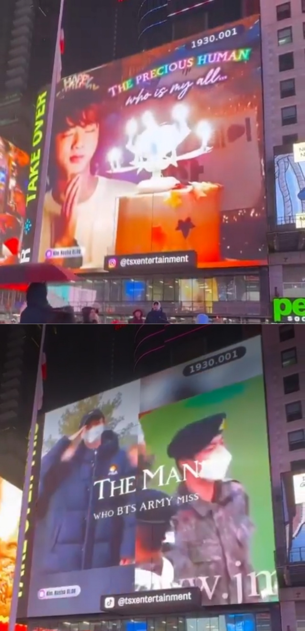 멕시코 아미들인 BTS MEXICO(@BTSARMY_MXCO)는 현지 시간 4일 뉴욕 타임 스퀘어에서 진의 생일 축하 영상 광고를 서포트했다.