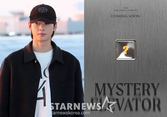 차은우는 8일 오후 공식 SNS를 통해 단독 팬콘 '2024 Just One 10 Minute 'Mystery Elevator''(2024 저스트 원 텐 미닛 '미스터리 엘리베이터') 개최 소식을 알리는 커밍순 티저 이미지를 공개했다.