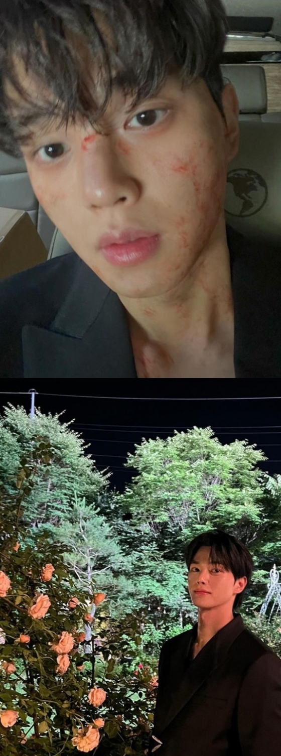 배우 송강이 피투성이 분장을 하고 촬영한 셀카를 공개했다.