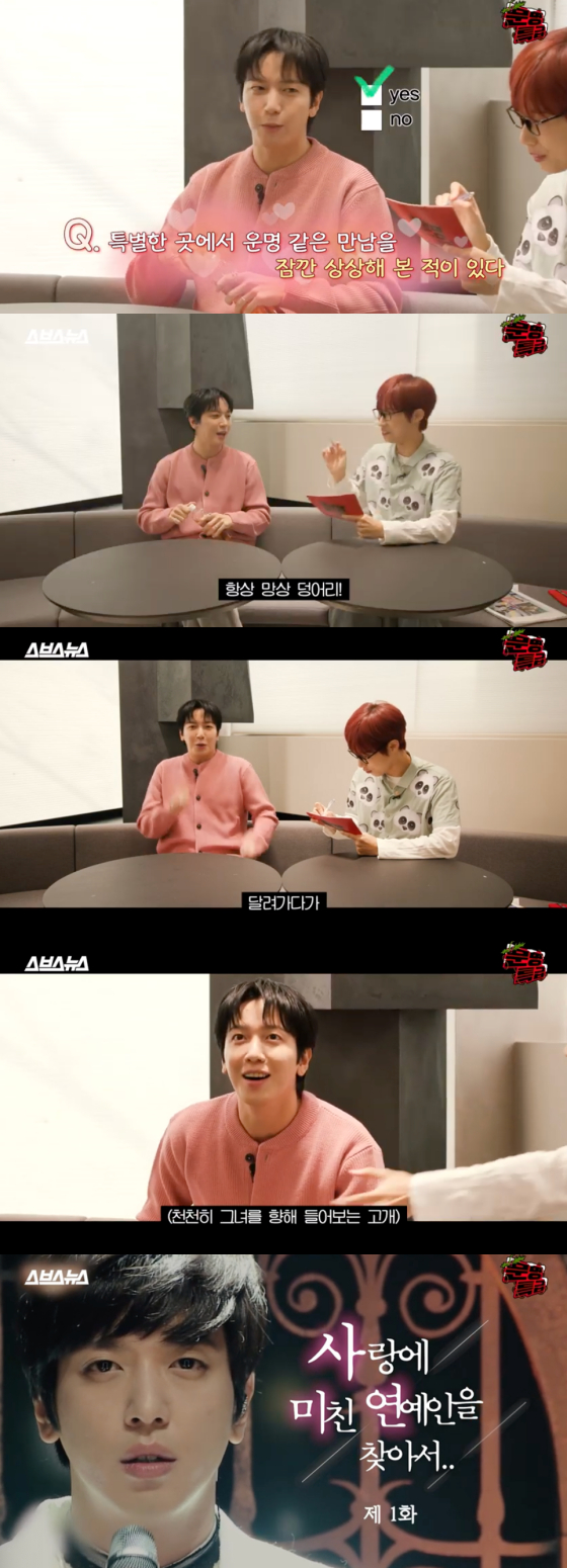 정용화는 "특별한 곳에서 운명 같은 만남을 잠깐 상상해 본 적이 있다"는 질문에도 "늘 그렇다"를 외쳤다. 정용화는 이어 자신이 "망상 덩어리"라며 공항에서 달려다가 마주치는 연기를 선보여 웃음을 안겼다.