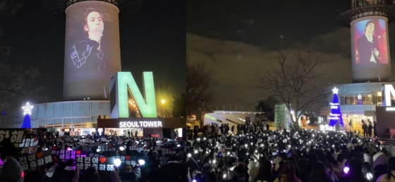 방탄소년단(BTS) 진의 생일(12월 4일)을 맞아 N서울타워가 환하게 불을 밝혔다.