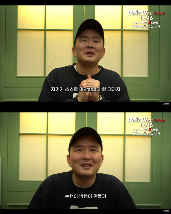 경기를 앞둔 윤형빈은 "얘는 (나한테) 죽었다. 이번에 되게 많이 때릴 거다. '잘못했어요'라고 할 때까지 계속 때릴 거다. 세게 때려서 눈탱이를 밤탱이로 만들겠다. 그게 내 전략이다"라고 말했다.