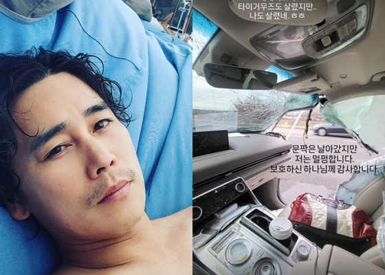 정태우는 지난 12일 자신의 SNS에 "차가 타이거 우즈도 살렸지만 나도 살렸네. 문짝은 날아갔지만 저는 멀쩡합니다. 보호하신 하나님께 감사합니다"라는 글과 함께 사진을 게재했다.