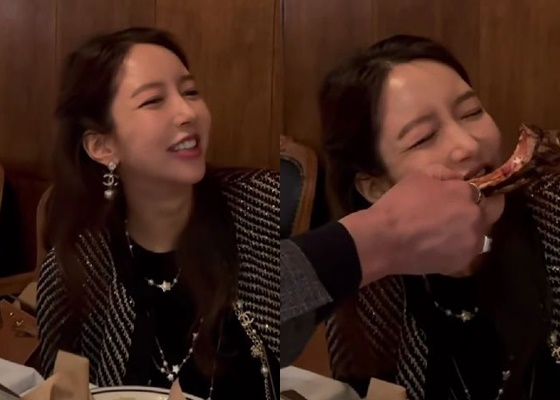 공개된 영상에는 스테이크를 즐기는 박현선의 모습이 담겨 있다. 이필립으로 추정되는 한 남성이 직접 고기를 먹여주자 박현선은 기분 좋은 미소를 지었다.