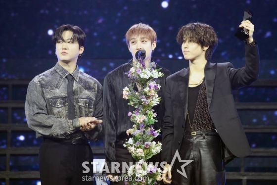 스트레이 키즈 쓰리라차, 예상 못한 AAA 베스트 크리에이터상 "음악 빛내준 멤버들 감사" [2023 AAA]