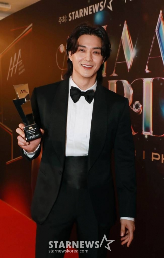 배우 김지훈이 '2023 AAA'에서 'AAA 베스트 아티스트' 상을 수상했다.
