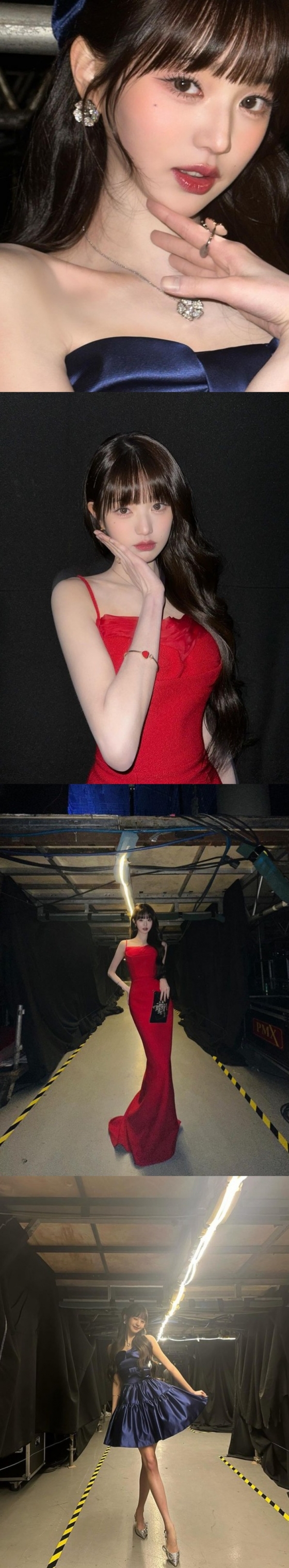 공개된 사진 속 장원영은 빨간색과 파란색 드레스를 완벽하게 소화해 다양한 포즈를 취하고 있다. 특히 비현실적인 비율과 만화 속 여주인공 같은 우월한 비주얼이 감탄을 자아냈다.