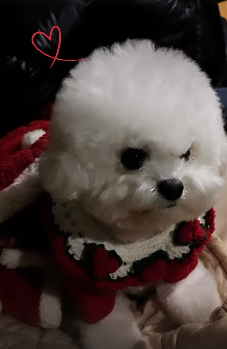 송혜교는 테이블 위에서 장난기 가득한 표정을 지어보이는가 하면, 반려견 루비를 안고 행복한 모습을 보여줬다.