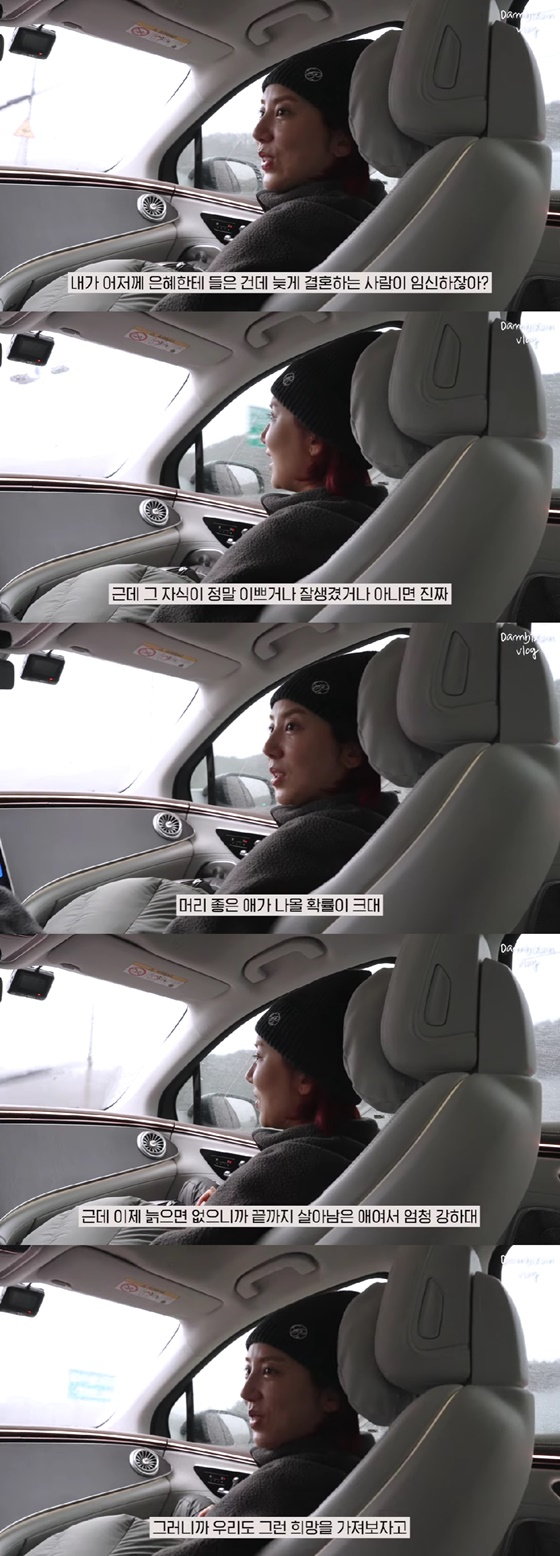 이날 손담비는 이규혁에게 "내가 들은 건데, 늦게 결혼하는 사람이 임신하면 정말 예쁘고 잘생겼거나 정말 똑똑한 아이가 나올 확률이 크다고 한다"고 운을 뗐다.