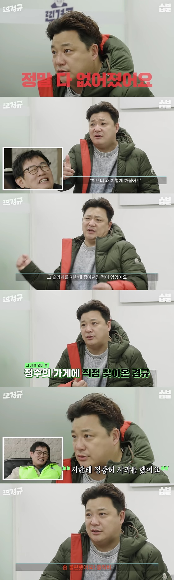 그러면서 "나중에 (이경규가) 제가 하는 가게에 직접 찾아와서 정중히 사과했다. 그런데 그게 솔직히 불편했다. 다시 찾아와서 사과하는 건 트라우마의 연속일 수도 있다"고 털어놔 웃음을 자아냈다.