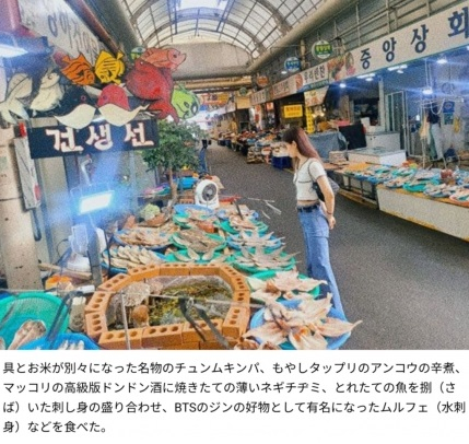 일본에서 활동하는 대한민국 국적 배우 현리(본명 이현리) 또한 일본의 포털 사이트 GOO를 통해 한국의 통영 여행 소식을 전하며 방탄소년단 진으로 인해 물회가 유명해졌다고 밝힌 바 있다.