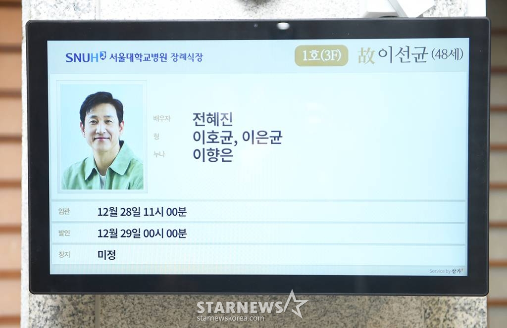 이선균의 빈소는 서울대학교병원 장례식장에 마련됐으며, 아내인 배우 전혜진이 상주로 자리를 지키고 있다. 유족과 소속사 직원 등도 분주하게 조문객들을 맞았다.