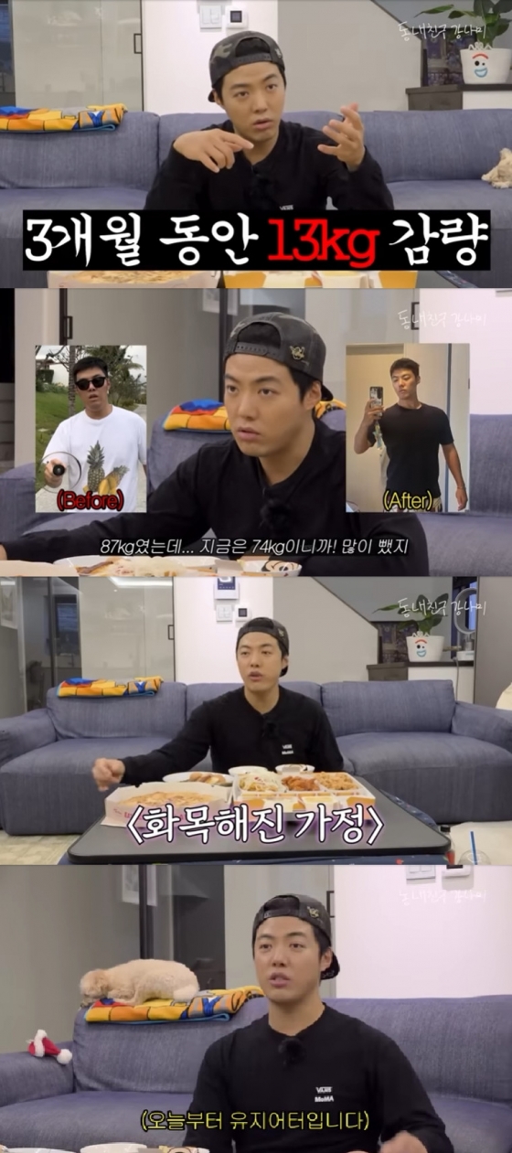 이어 강남은 다이어트 성공을 기념해 치팅 데이를 가졌고, 치킨과 피자를 먹었다. 그는 "살 빼고 가정이 화목하다. '운동해라', '살 빼라' 소리도 안 한다. 예전에는 뭐 먹고 있으면 한숨 쉬고, '그만 먹어'라고 했는데 이제는 엄마가 좋아하신다. 상화 씨도 뭐 먹는지 체크 안 하고, 잔소리도 없어졌다"고 말했다.