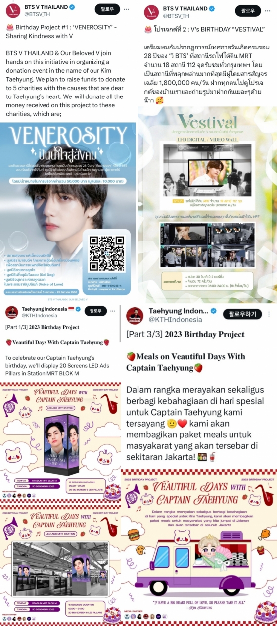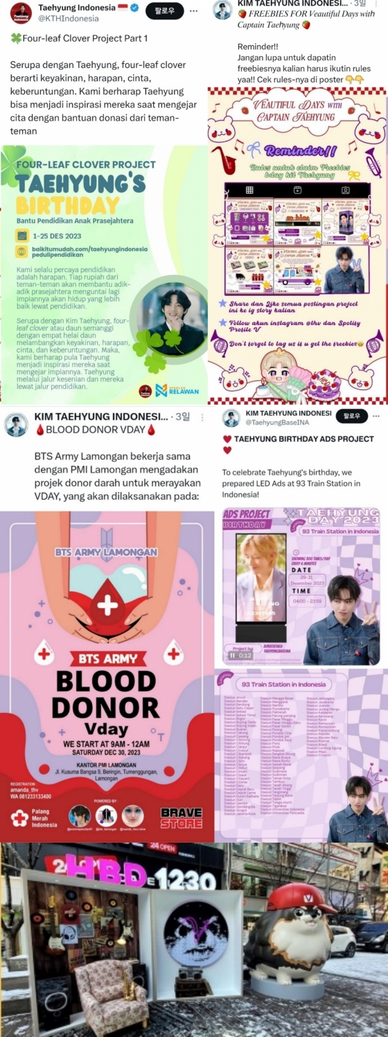인도네시아 팬들도 다양한 이벤트와 기부로 뷔의 생일을 축하하고 있다.