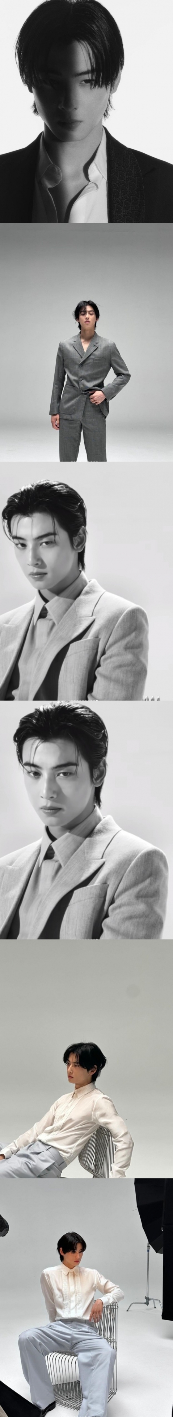 공개된 사진 속 차은우는 다양한 패션과 헤어스타일을 완벽히 소화해 독보적인 오라를 뿜어내고 있다. 특히 보기만 해도 눈이 번쩍 뜨이는 황홀한 비주얼과 비현실적인 비율이 감탄을 자아냈다.