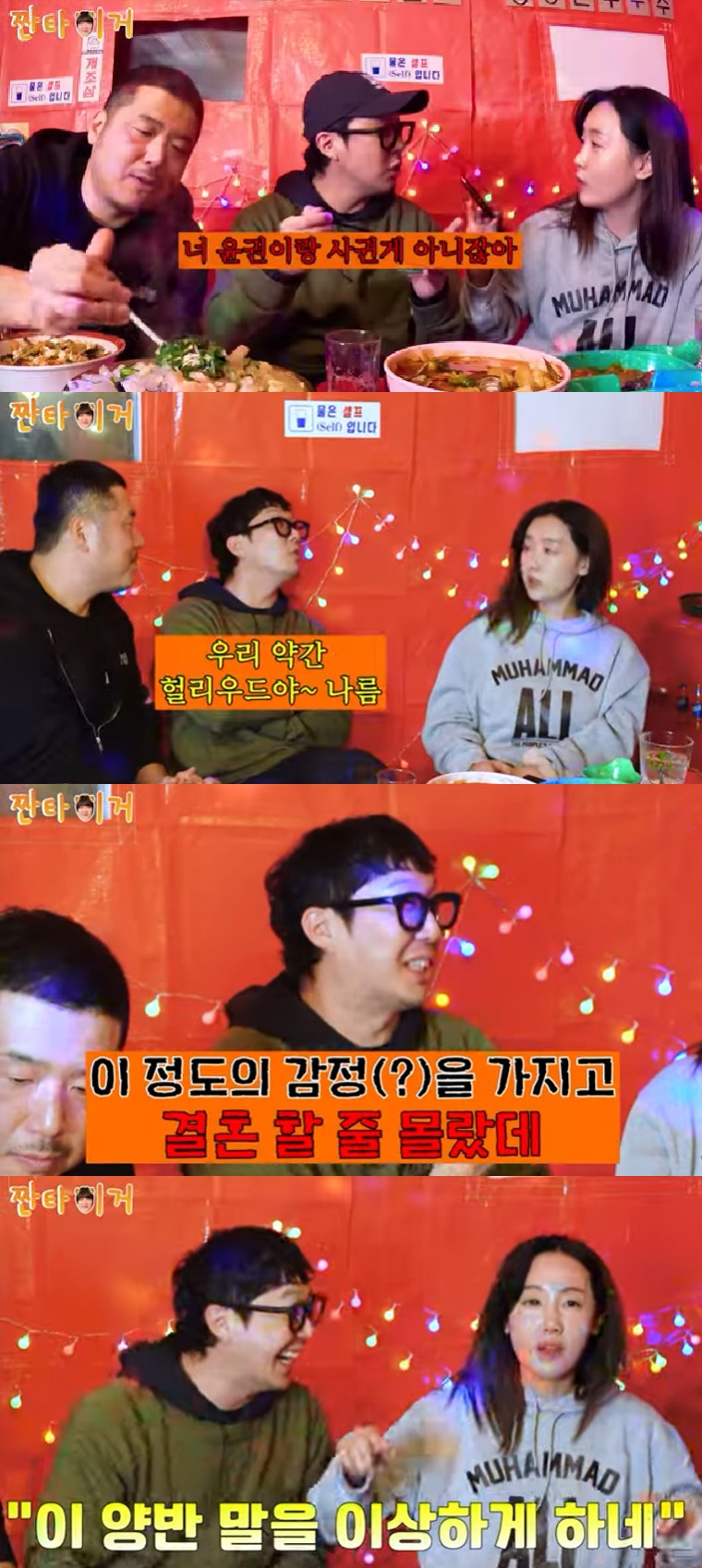 특히 하하는 "우리 부부는 할리우드 스타일이다. 얘 전 남친이 우리 결혼식에 왔었다. 뒤에서 숨어서 보고 있더라"라고 말하며 별이 기안84와의 인터뷰에서 '이 정도의 감정을 가지고 결혼할 줄 몰랐다'고 말한 데 대해 서운함을 토로했다.