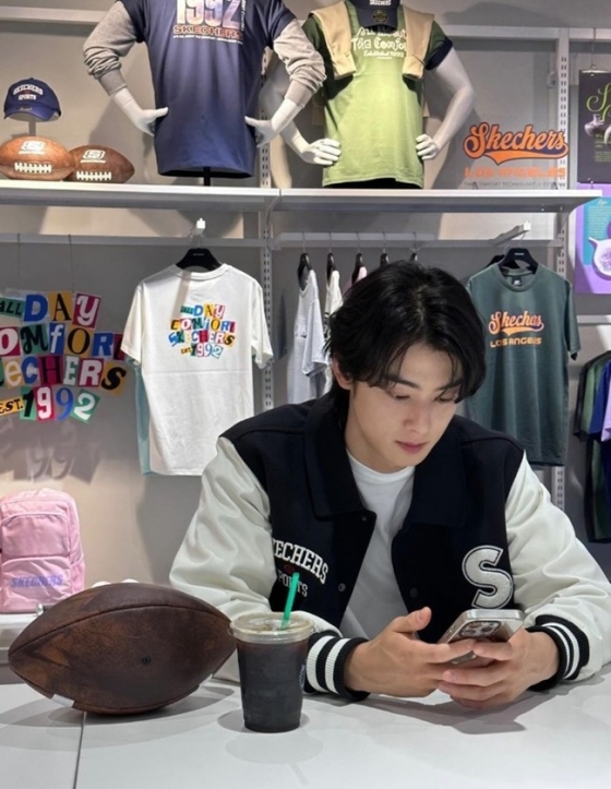 10일 차은우는 자신의 인스타그램에 "SKECHERS"라는 문구와 함께 여러 장의 사진을 게재했다.