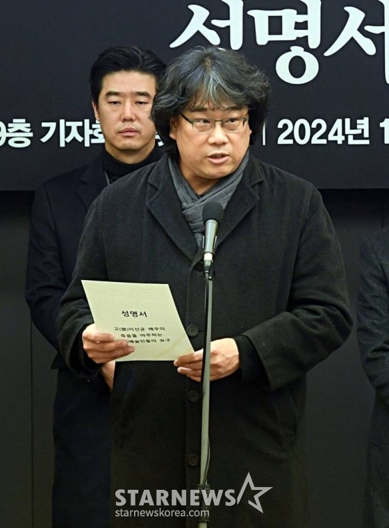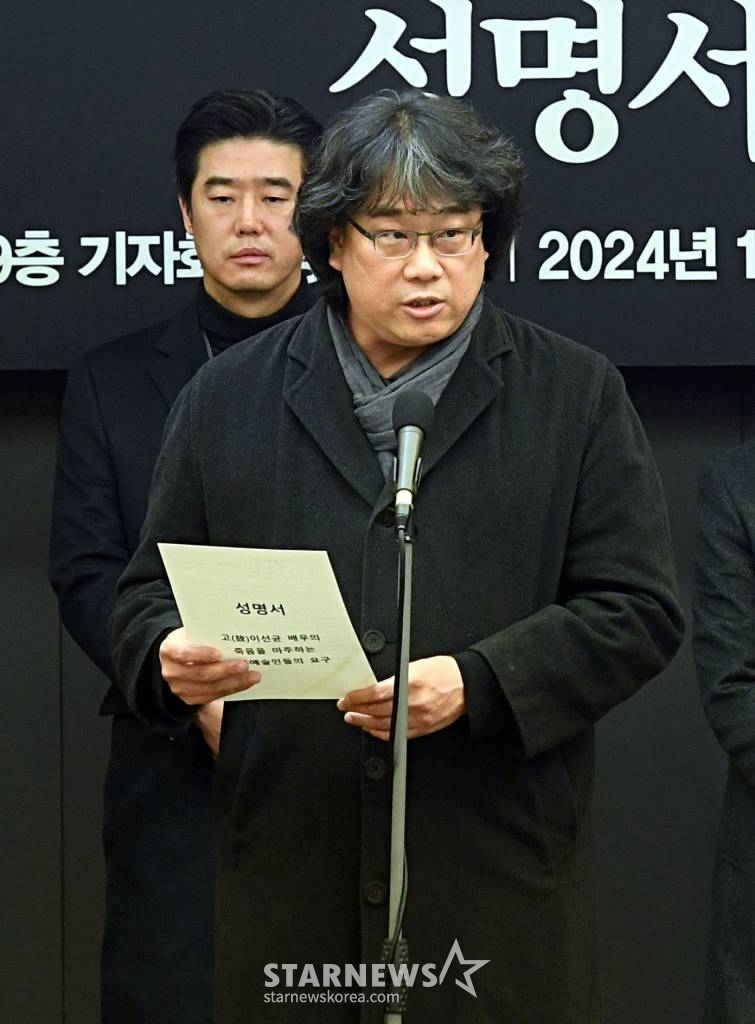 봉준호 감독은 성명서를 통해 경찰 수사 보안에 대한 의구심을 표하며 철저한 진상 규명을 촉구했다.