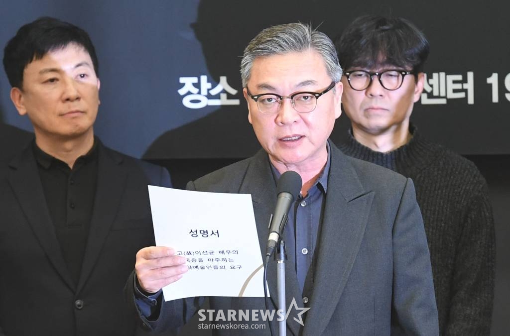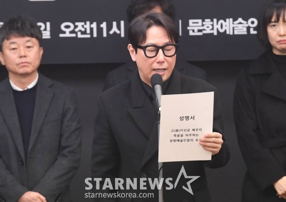 문화예술인 연대회의(가칭)는 12일 오전 11시 서울 중구 한국프레스센터에서 '고 이선균 배우의 죽음을 마주하는 문화예술인들의 요구'라는 제목의 성명을 발표했다.