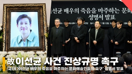 12일 오전 서울 중구 세종대로 프레스센터에서 '고(故)이선균 배우의 죽음을 마주하는 문화예술인들의 요구' 성명서 발표가 진행됐다.