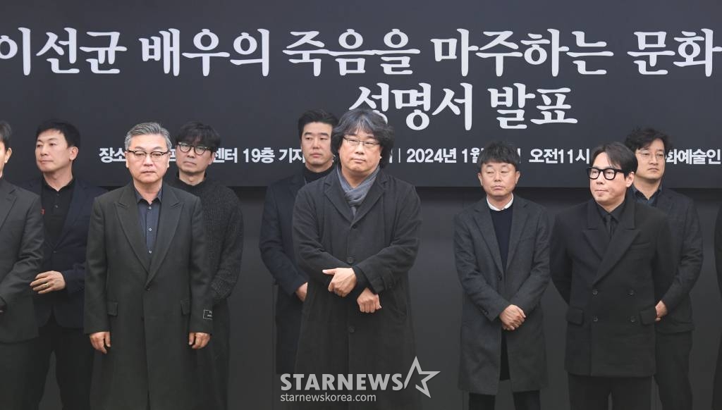 성명을 발표하는 자리에는 영화 '기생충'으로 생전 고인과 호흡을 맞춘 봉준호 감독을 비롯해 가수 겸 작곡가 윤종신, 이원태 감독, 배우 김의성 등이 참석했다. 이들은 성명서를 낭독하며 수사기관과 언론에 대한 자정 노력을 촉구하고, 정부와 국회에 입법적 개선을 호소했다.