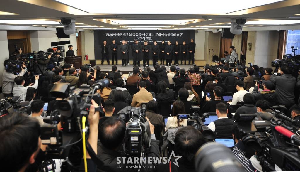 한국영화프로듀서조합 소속 장원석 대표는 "고인의 장례 기간 내내 방송, 영화, 음악 등 고인과 함께 작업 및 교류했던 대중문화예술계가 총망라된 많은 분의 조문이 있었다"며 "그 자리에서 수사 및 언론 보도 과정에서 나타난 여러 문제점들에 대한 목소리를 내야 할 필요성과 함께 다시는 이런 일이 반복돼서는 안 된다는 폭넓은 공감대가 형성됐다"고 밝혔다.