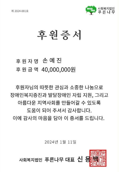 끝으로 손예진은 "총 3998만9000원이 모아졌다. 우리가 모은 돈으로 특별한 날 기부했다"고 전했다.