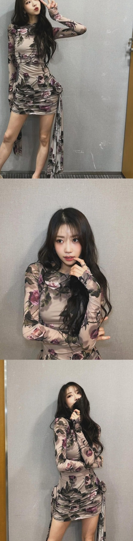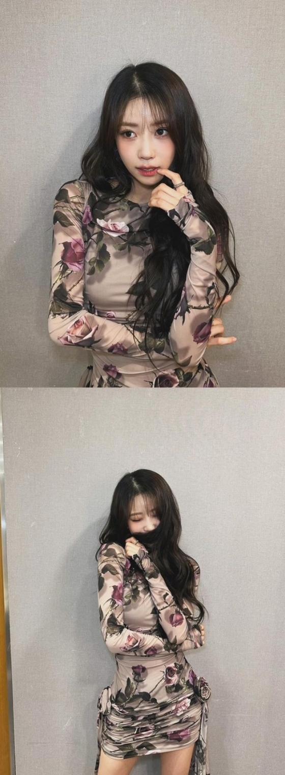공개된 사진 속 이미주는 장미 문양이 눈에 띄는 몸에 달라붙는 원피스를 입고 포즈를 취하고 있다. 특히 얼굴 3분의 1을 차지하는 듯한 커다란 눈망울과 인형같이 늘씬한 몸매가 시선을 끌었다.