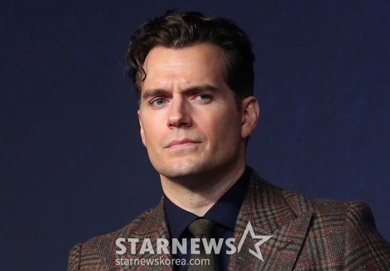 할리우드 배우 헨리 카빌이 18일 오전 서울 종로구 포시즌스호텔 서울에서 진행된 할리우드 영화 '아가일' 내한 기자회견에서 취재진을 바라보고 있다.
