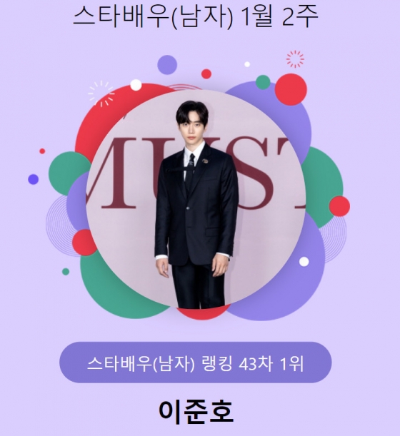 이준호는 1월 11일 오후 3시 1분부터 18일 오후 3시까지 진행된 1월 1주(43차) 스타랭킹 스타배우 남자 랭킹 투표에서 1만 1102표를 획득해 1위에 올랐다.