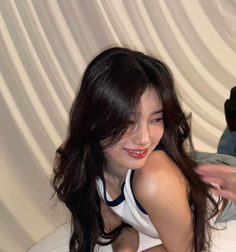 공개된 사진 속 수지는 민소매 티를 입고 바닥에 누워 포즈를 취하고 있다. 특히 배시시 웃는 사랑스러운 표정과 요염함이 묻어나는 성숙한 분위기가 팬들의 마음을 설레게 했다.