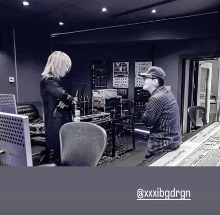 공개된 사진에는 지드래곤과 요시키가 녹음실에서 손가락 브이(V)나 엑스(X) 표시를 그리는 모습이 담겼다.