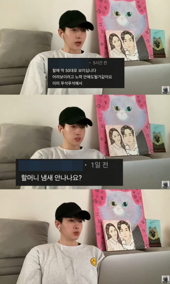 또한 "할머니 냄새 안 나냐는 말이 진짜 많은데 10~20대면 할머니란 나이로 느껴질 수도 있다. 미나 씨는 한평생 살면서 담배를 피워본 사람도 아니고 몸이 건강하면 냄새가 안 난다. 미나 씨에겐 할머니 냄새 아니다. 한창 꽃 피운 아름다운 냄새가 난다"라며 "난 20대 만나고 싶다고 생각한 적 없다. 미나 씨 같은 사람을 안 만나봐서 모르는 거다. 이런 분들 조심해야 한다. 이런 분들도 나중엔 결혼해서 살 거다"라고 말했다.
