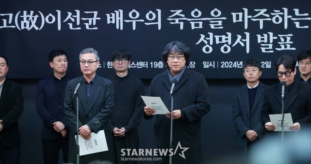 봉준호 감독, 가수 윤종신, 배우 김의성 등 문화예술인들은 지난 12일 '고(故) 이선균 배우의 죽음을 마주하는 문화예술인들의 요구' 성명을 통해 수사정보 유출 경위에 대한 진상 규명을 촉구했다.