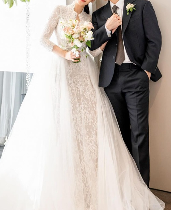 걸 그룹 AOA 출신 유나가 웨딩드레스 자태를 뽐냈다.
