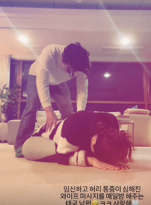 아유미는 27일 자신의 SNS를 통해 "임신하고 허리 통증이 심해진 와이프 마사지를 매일 밤 해주는 태국 남편 사랑해"란 글을 게재했다.
