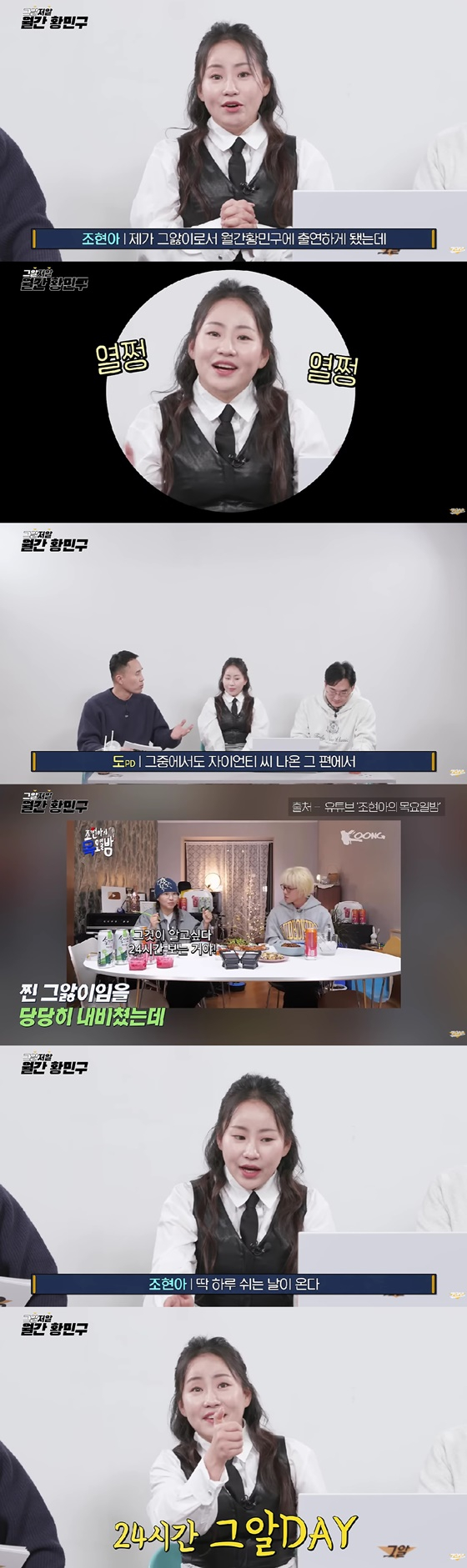 이에 진행자는 "(조현아의) 유튜브 채널 거의 모든 편을 봤는데 자이언티 나온 회차에서 '그알'을 24시간 본다고 하셨더라"고 조현아의 '그알' 사랑을 언급했다.