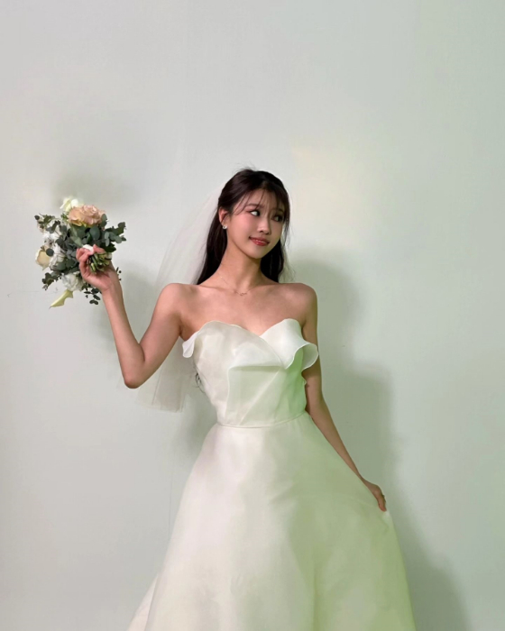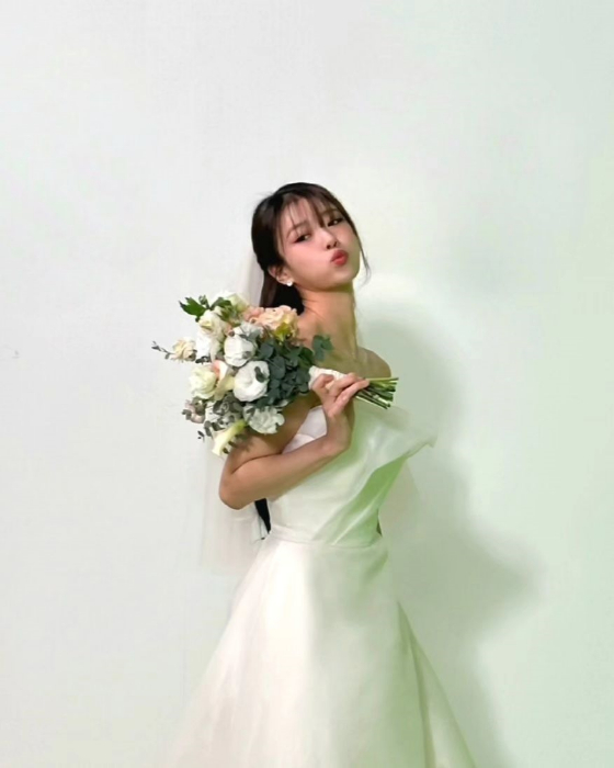 공개된 사진에는 이미주가 웨딩드레스를 입고 있는 모습이 담겼다.