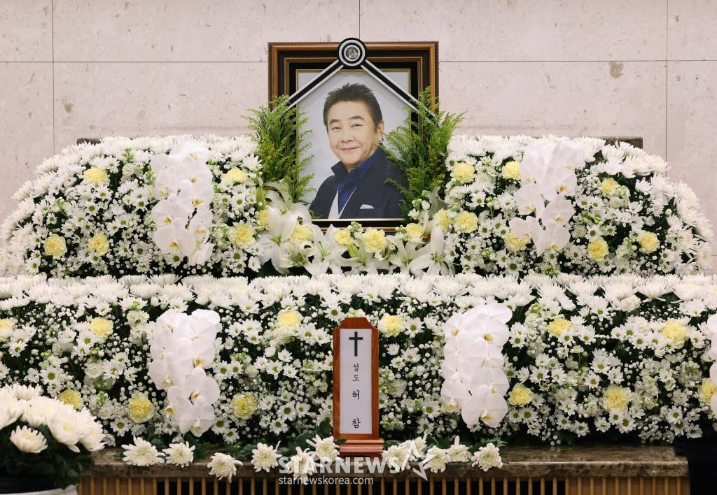 간암 투병 끝에 향년 73세로 별세한 방송인 故 허참(본명 이상룡)의 빈소가 1일 서울 송파구 서울아산병원 장례식장에 마련됐다. 부산에서 태어나 동아대 경영학과를 졸업한 허참은 1970년대 음악다방 '쉘부르' MC로 연예계에 입문, 1971년 TBC '7대 가수쇼' MC로 정식 데뷔했다. 이후 뛰어난 입담으로 KBS 2TV '쇼쇼쇼', '도전 주부가요스타' 등 MC로 활약했다. 발인은 3일 오전. /사진공동취재단 /사진=이동훈 기자 photoguy@