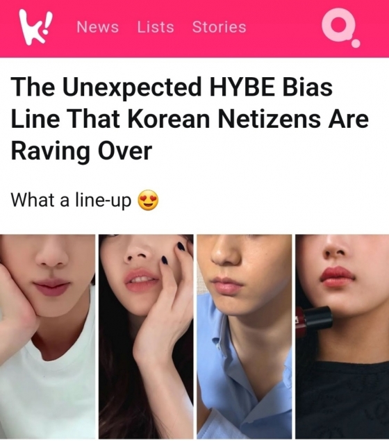 미국 연예매체 코리아부(Koreaboo)는 최근 '한국 네티즌들 사이에서 폭발적인 반응을 보이는 예상 밖의 하이브(HYBE) 최애 라인' 이라는 기사를 내보냈다.