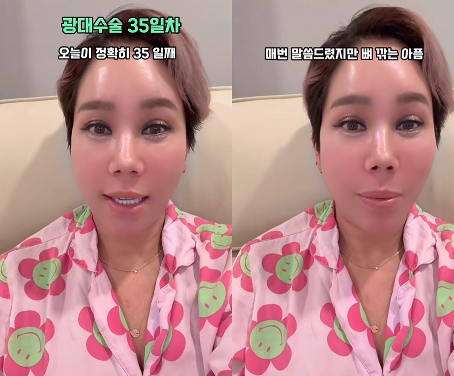 방송인 김송이 광대 수술 35일 차 모습을 공개했다.